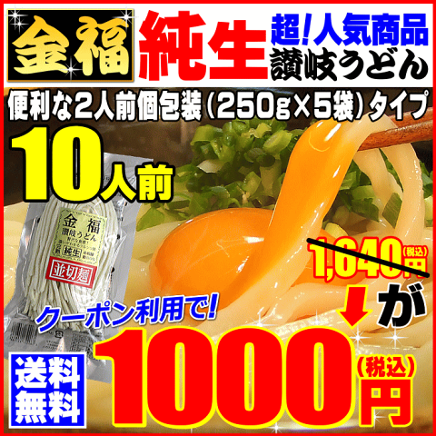 ■麺つゆ:大豆、さば、ゼラチン 金福 送料0金福・純生うどんBIG10人前 便利な2人前個包装タイプ 250g(2人前)×5袋 1袋2人前200gではなく BIG 250g 1,640円が ↓ クーポン利用で!ナント 激得1,000円 送料無料 大根おろしや薬味を沢山載せておいしく頂く贅沢な讃岐うどんも楽しめる! ↓ ↓ ↓ ↓ ↓ つゆ付きをお求めの方は こちら